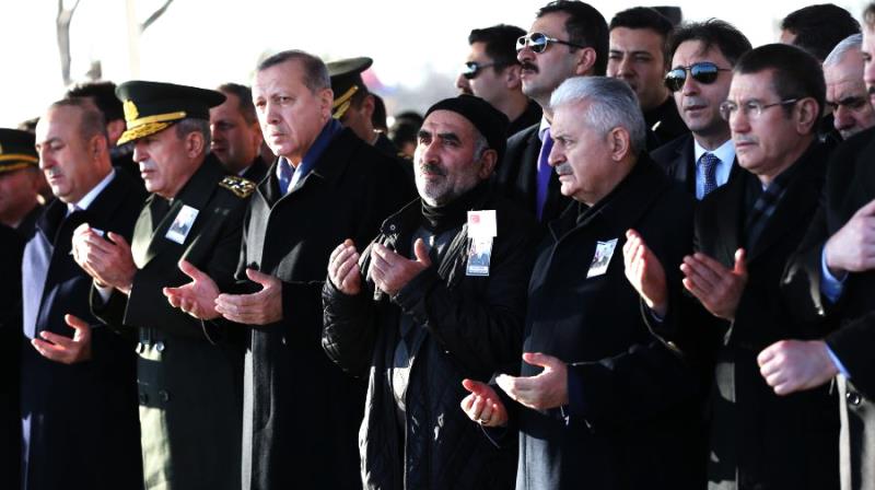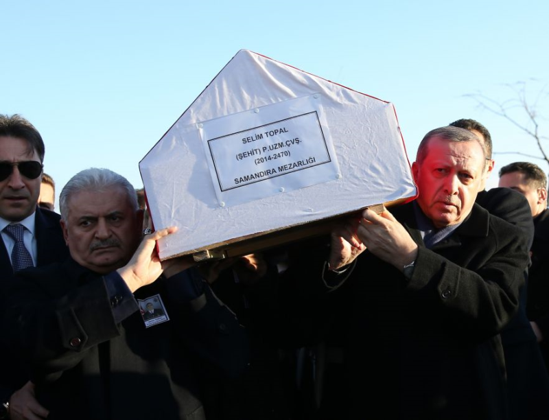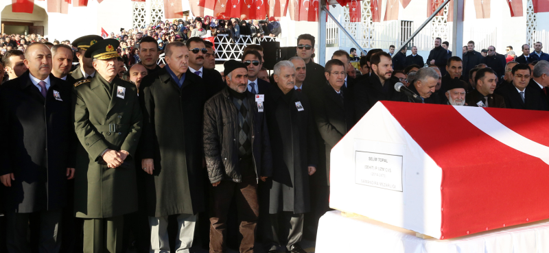 Cumhurbaşkanı Recep Tayyip Erdoğan ve Başbakan Binali Yıldırım, Fırat Kalkanı Harekatı kapsamında şehit düşen Piyade Uzman Çavuş Selim Topal'ın cenaze törenine katıldı.